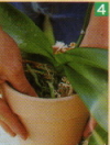 まず、化粧鉢から株を取り出し、傷んだ根を切除します。ほぼすべての根が傷んでいるか、水ゴケ自体が傷んでいる場合を除き、元の水ゴケを取り除く必要はありません。作業は、下のプロセス写真を参照してください。