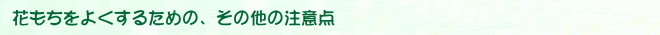 最近は、少しでも長く花を楽しんでもらいたいために、咲き具合の硬い(蕾の多い)寄せ植えを贈る方がふえています。冬の乾燥する時期に、このように蕾の多い花をいただいた場合、乾燥しすぎのため蕾が咲ききれずに落ちてしまうことがあります。これを防ぐには、1日に2~3回、霧吹きで水分を与えます。また、一般家庭の室内に置く場合、空気が乾燥する時期は、花にも水分を与えたほうが、花もちも多少よくなるようです。