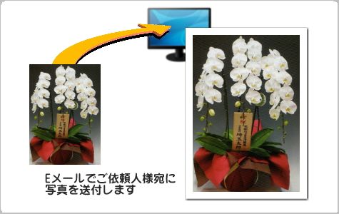 榎本洋蘭園では、お届けするお花を写真に撮って、ご依頼主様宛に「写真」をメールで送信しております。